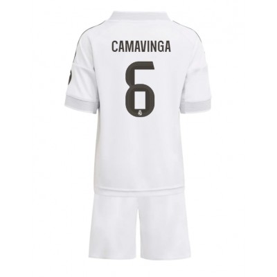 Stroje piłkarskie Real Madrid Eduardo Camavinga #6 Koszulka Podstawowej dla dzieci 2025-26 Krótki Rękaw (+ szorty) /