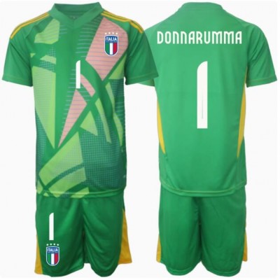 Stroje piłkarskie Włochy Gianluigi Donnarumma #1 Bramkarskie Koszulka Wyjazdowej dla dzieci ME 2024 Krótki Rękaw (+ szorty)